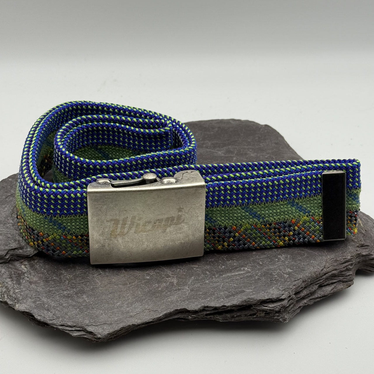 Der Gurt wird hergestellt aus ausgedienten Kletterseilen und steht so voll und ganz im Zeichen des Re- und Upcyclings.